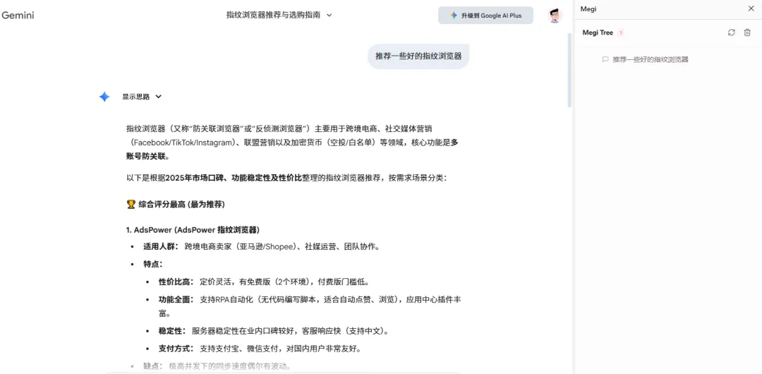 最让我感动的是,作者没搞“平台歧视”。 不像有些插件只支持 ChatGPT。 Megi Tree 支持 DeepSeek、豆包、腾讯元宝、通义千问、文心一言、Gemini…基本上国内国外叫得上名字的“牛马”工具,它都能接管。