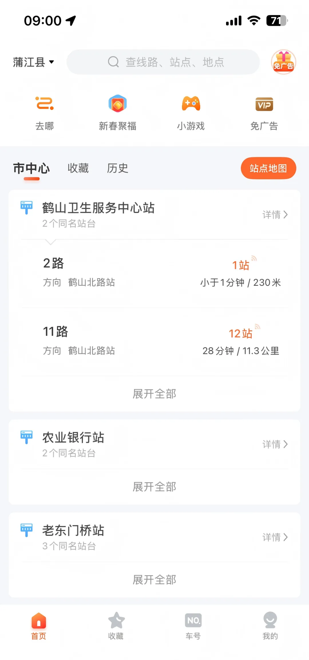 首页即可查看附近公交站点、站点公交线路、公交车到站时间,轻松掌握周边公交的各种实时动态。