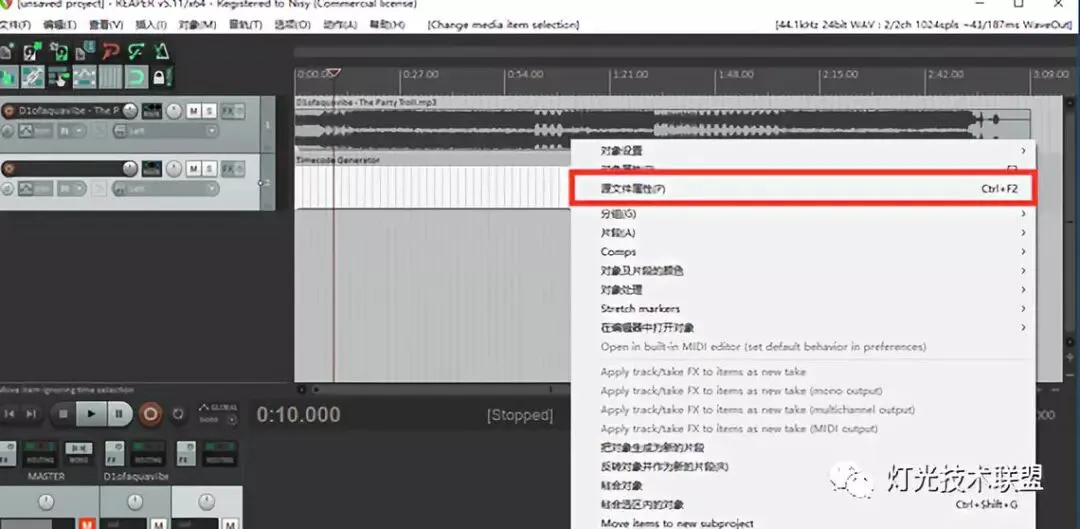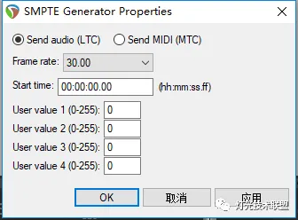 5.修改时间码触发方式,在时间码时间线上点击右键,选择源文件属性,选择Send Audio(LTC),如需修改帧数可在 Frame rate 处修改,完成后按 OK