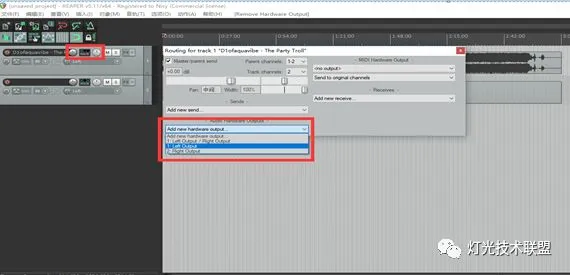 在1号轨道点击RCUTE,把输出切换为左声道(Left Output)