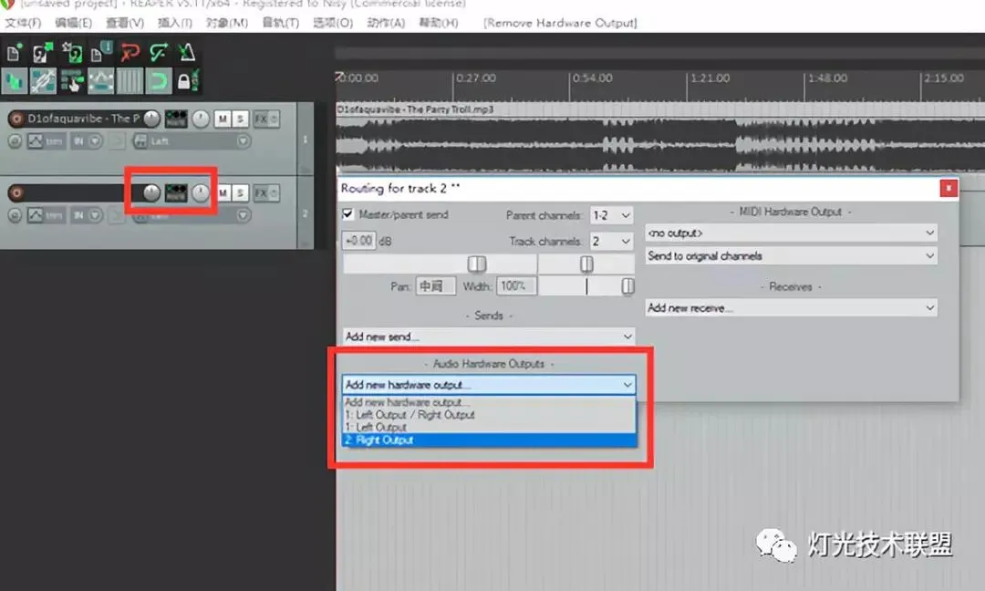 在2号轨道点击RCUTE,把输出切换为右声道(Right Output)