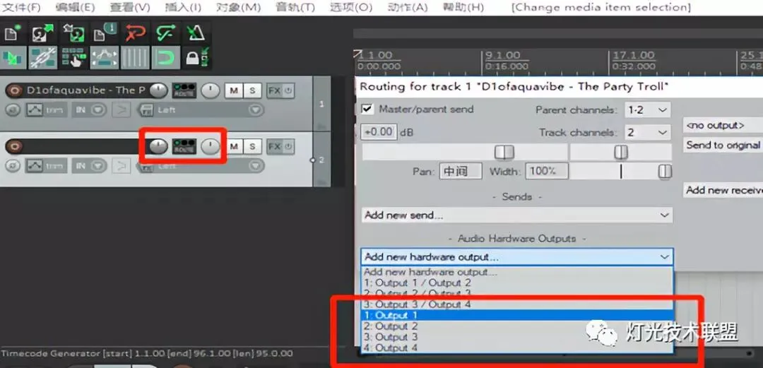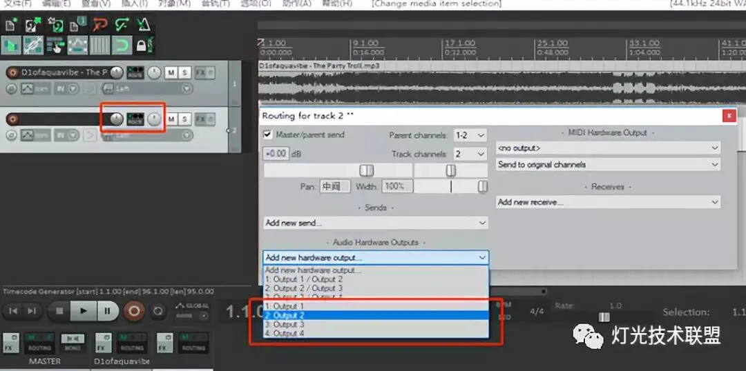 7.声卡1号口,输出给音箱或者调音台,声卡2号口输出给灯光控台