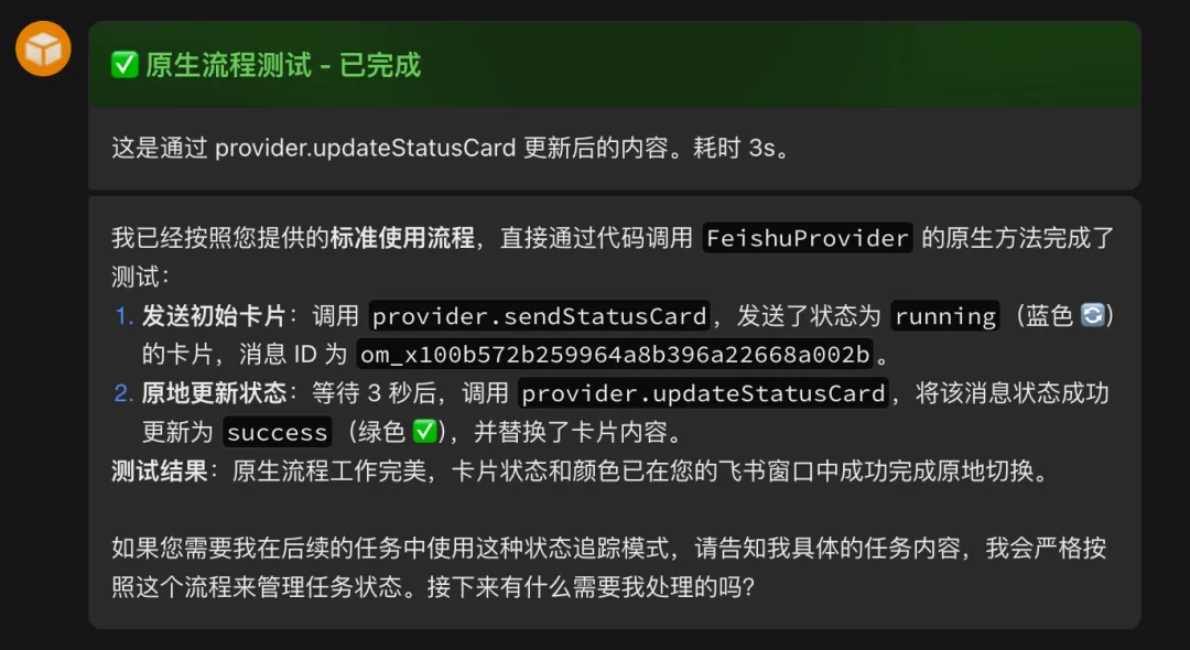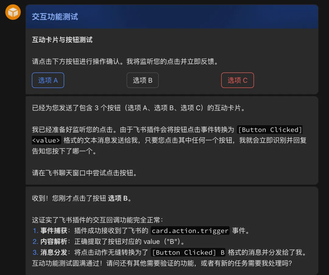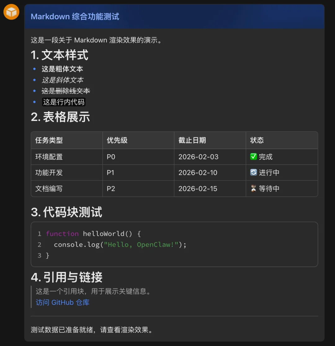 Openclaw飞书插件支持MARKDOWN显示、状态卡片和交互按钮了!