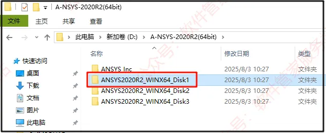 第三步:打开解压后的文件夹,找到【ANSYS2020R2_WINX64_DISK1】文件夹并打开。