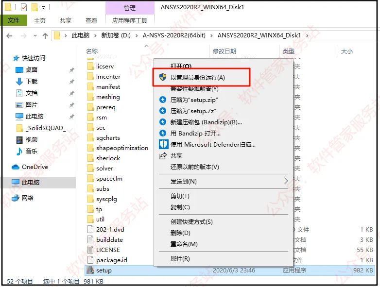 第四步:选中【setup】安装程序,右击选择【以管理员身份运行】。