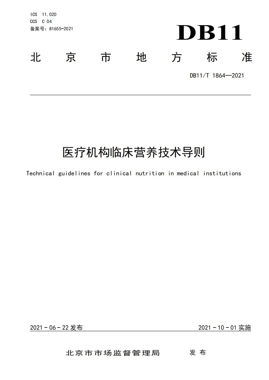 【文件下载】医疗机构临床营养技术导则