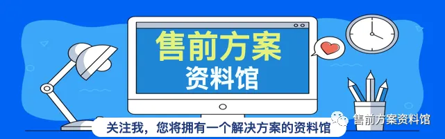 我们努力成为售前方面的的工具箱、资料馆,帮助大家更高效的完成解决方案的编写,您的需要就是我们努力的方向。欢迎您给我们提出宝贵的意见和建议。