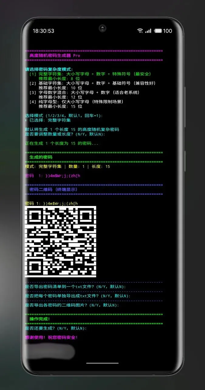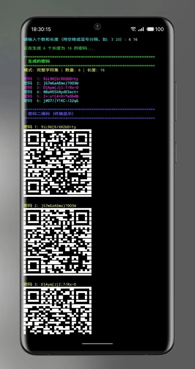 display_qrcode_terminal(pwd, f"密码 {i}: {pwd}")