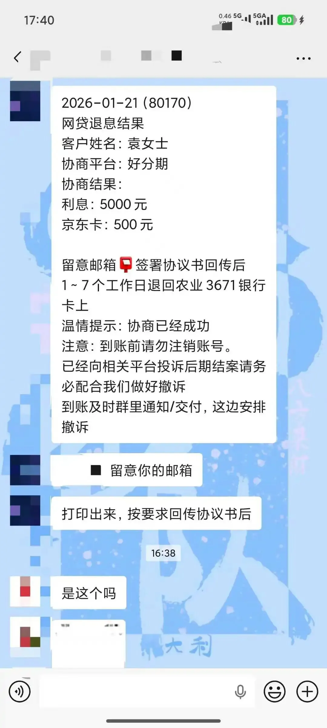 坚持要求退费至本人实名银行卡,拒绝平台提出的“补偿券”“借款抵扣额度”“优惠券”等变相补偿,这些都是平台的拖延手段,坚决不妥协。