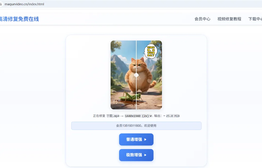 麻雀AI视频修复工具提供免费版和会员版两种选择: