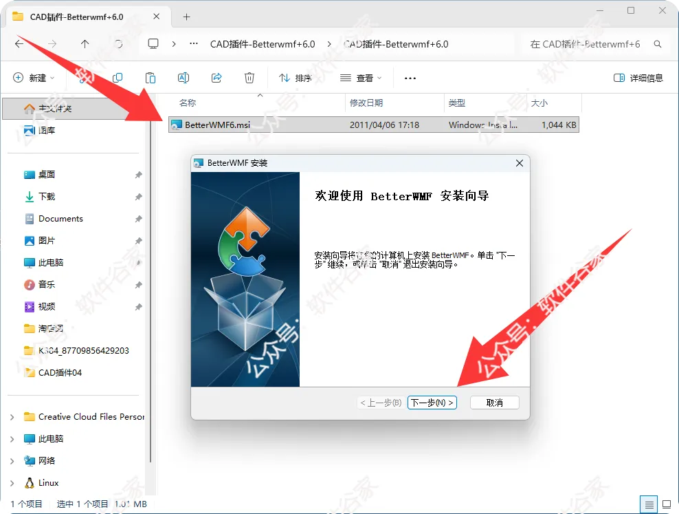 先把软件包下载 BetterWMF6.0_Setup.exe → 双击运行,选择“简体中文”。