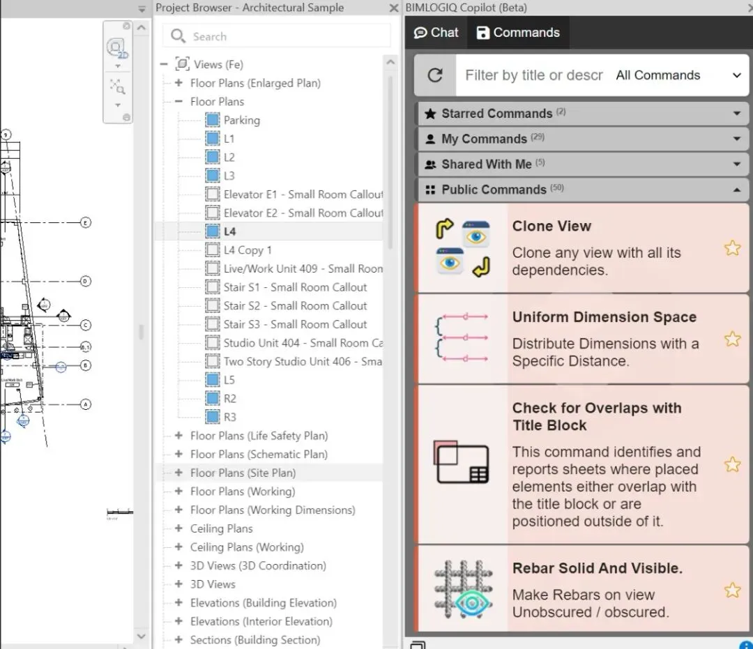 它是一款能辅助Revit工作的AI助手,它能让用户直接通过语音命令的方式来驱动Revit进行设计,不需要编写代码或者脚本也能实现之前需要通过插件才能处理的复杂建模操作,创新性地改变了设计师与Revit之间的操作方式。