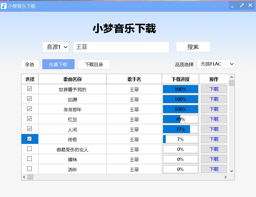 界面简洁易用:软件界面简洁明了,操作简单,新手用户也能快速上手。安全可靠:经过严格安全检测,无广告、无插件、无恶意软件,保障用户电脑和个人信息安全。稳定高效:采用先进下载技术和服务器架构,下载过程稳定,不易出现卡顿、中断问题。批量下载:支持批量下载功能,用户可按音质选择,一次性下载多首歌曲,适合整理歌单或收藏专辑,省时高效。