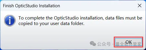 13、不勾选【Launch OpticStudio】,再点击【Finish】