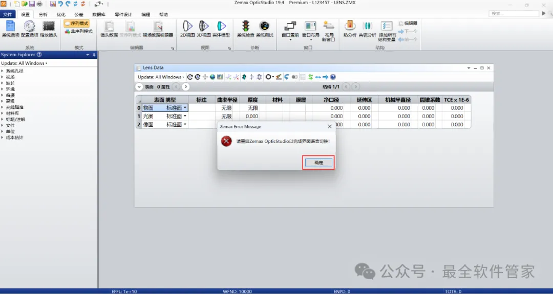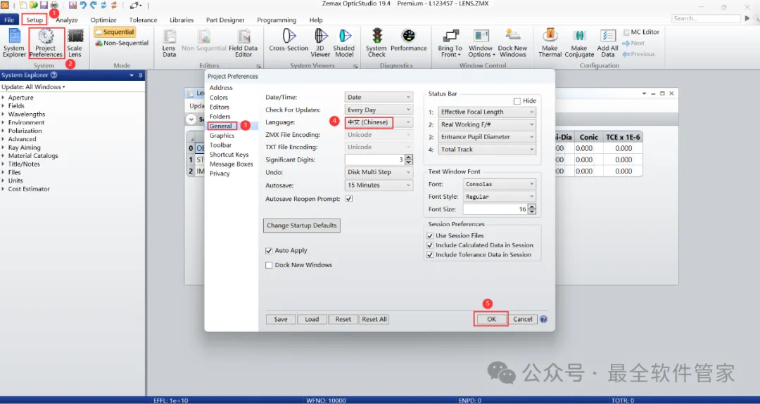 25、依次点击【Setup】、【OpticStudio Preferences】、【General】,Language选择【中文(Chinese)】,再点击【OK】