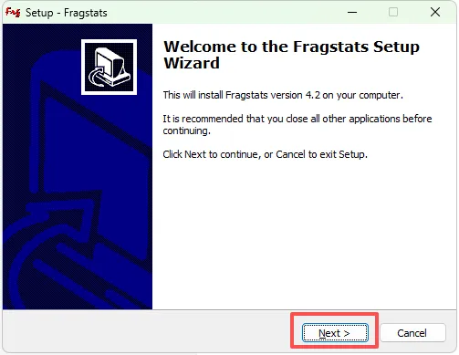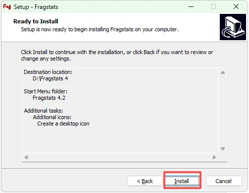 景观指数计算软件Fragstats4.2安装教程及安装包 需要安装包的后台发送Fragstats4.2安装包,双击运行 1、下载文件夹,双击运行【frg_setup_4.2.exe】 2、点击next 3、选择安装路径,并点击next 4、继续点击next 5、继续点击next 6、点击Install 7、安装完成,直接打开即可