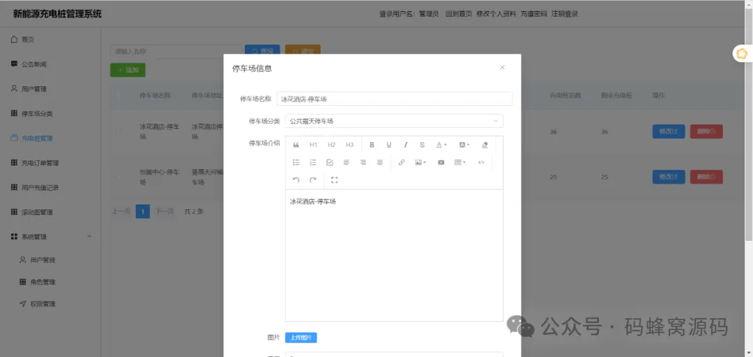 该SpringBoot+Vue的新能源充电桩管理系统,后端采用SpringBoot架构,前端采用Vue+ElementUI实现页面的快速开发,并使用关系型数据库MySQL存储系统运行数据。本系统角色分别是:系统管理员,前台用户。