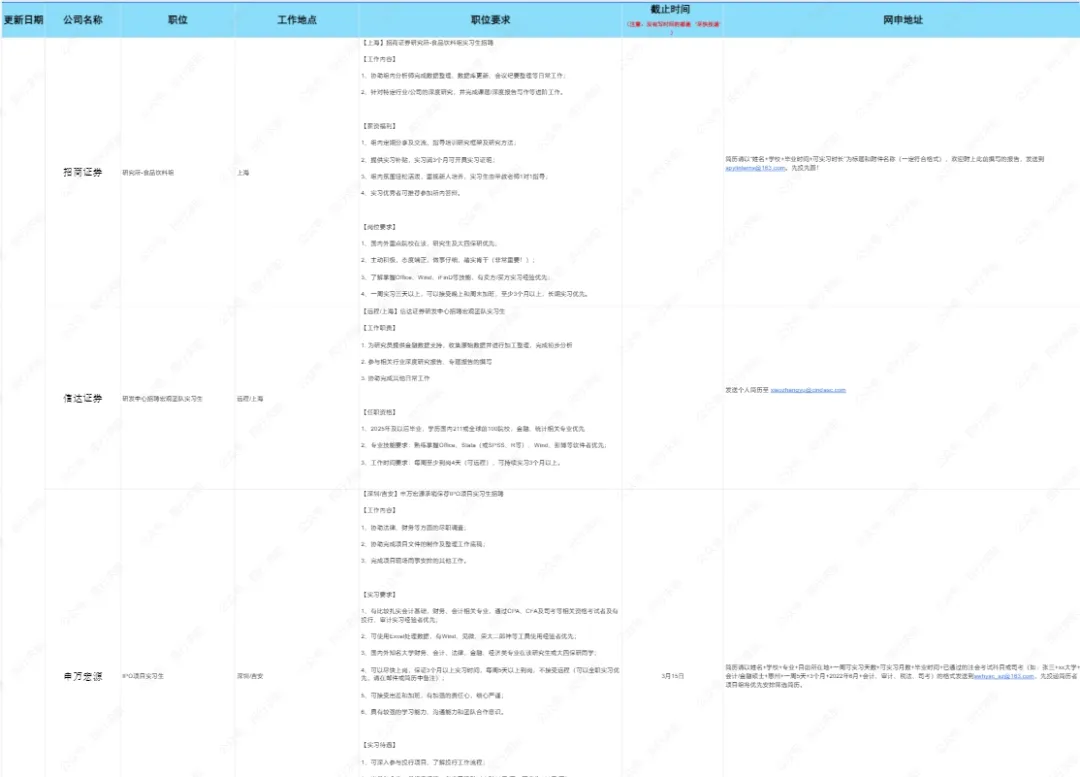 持续更新券商&投行实习信息