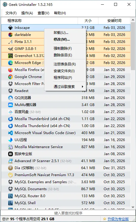 一款免费、轻量的Windows程序卸载工具,支持 32 位和 64 位系统,可用于标准卸载和强制卸载各种软件,包括Microsoft Store应用。
