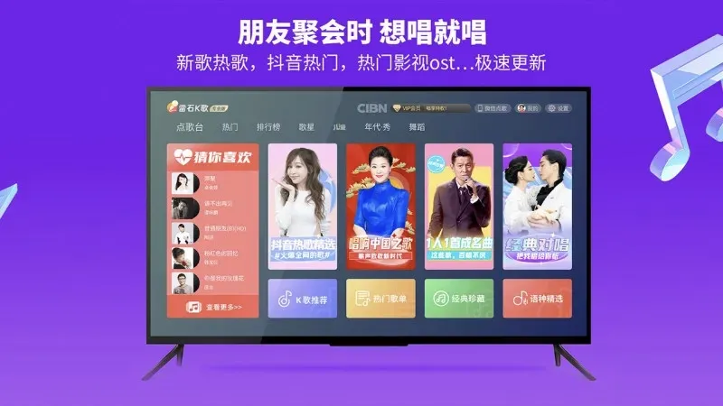 专业音效:专业的 K 歌内容为基础,依托电视大屏优势,营造沉浸式 K 歌体验。