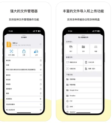– 支持从SMB,FTP,iCloud Drive,WebDav, 二维码扫描上传下载等方式导入文件