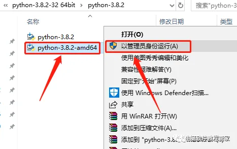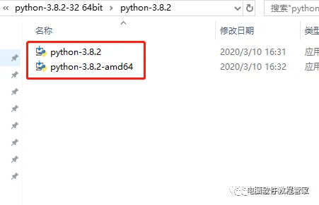 3.如果你的电脑是64位操作系统,选择【python-3.8.2.amd64】安装程序,如果电脑是32位操作系统,选择【python-3.8.2】安装程序。