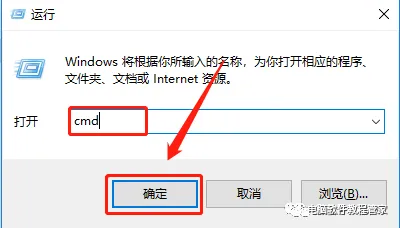 10.使用快捷键【Win+R】调出运行面板,输入【cmd】点击【确定】。