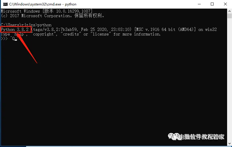 12.,若显示当前python版本 【3.8.2】则表示安装成功。