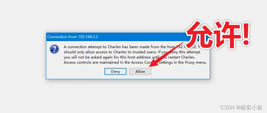 所以这里我们应该点击Allow(允许)受信任的用户设备来访问Charles