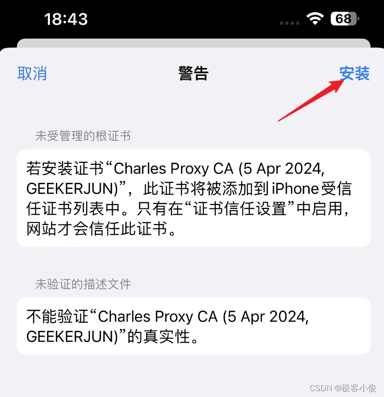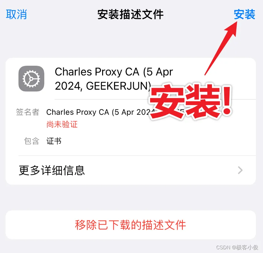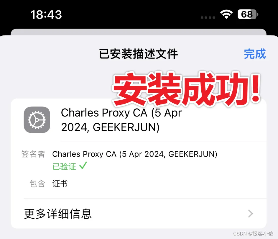 安装完成之后,别忘记在手机中打开信任Charles证书