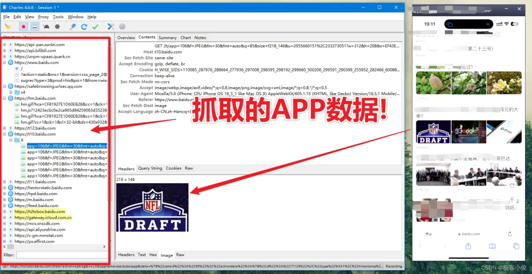 那么如果不出意外的话,现在你就可以打开你的手机APP然后同时也查看Charles的请求数据列表,就会有你所抓取到iOS手机APP的请求与响应的信息了!