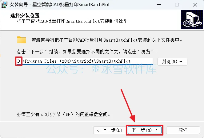 5.修改路径地址中的第一个字符C可更改安装位置(如:把C改为D软件将安装到D盘),点击【下一步】。