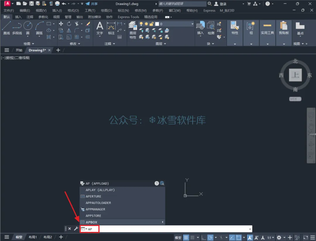 9.在打开的CAD软件界面命令栏中输入【AP】在键盘上按【Enter】键(即回车键)。