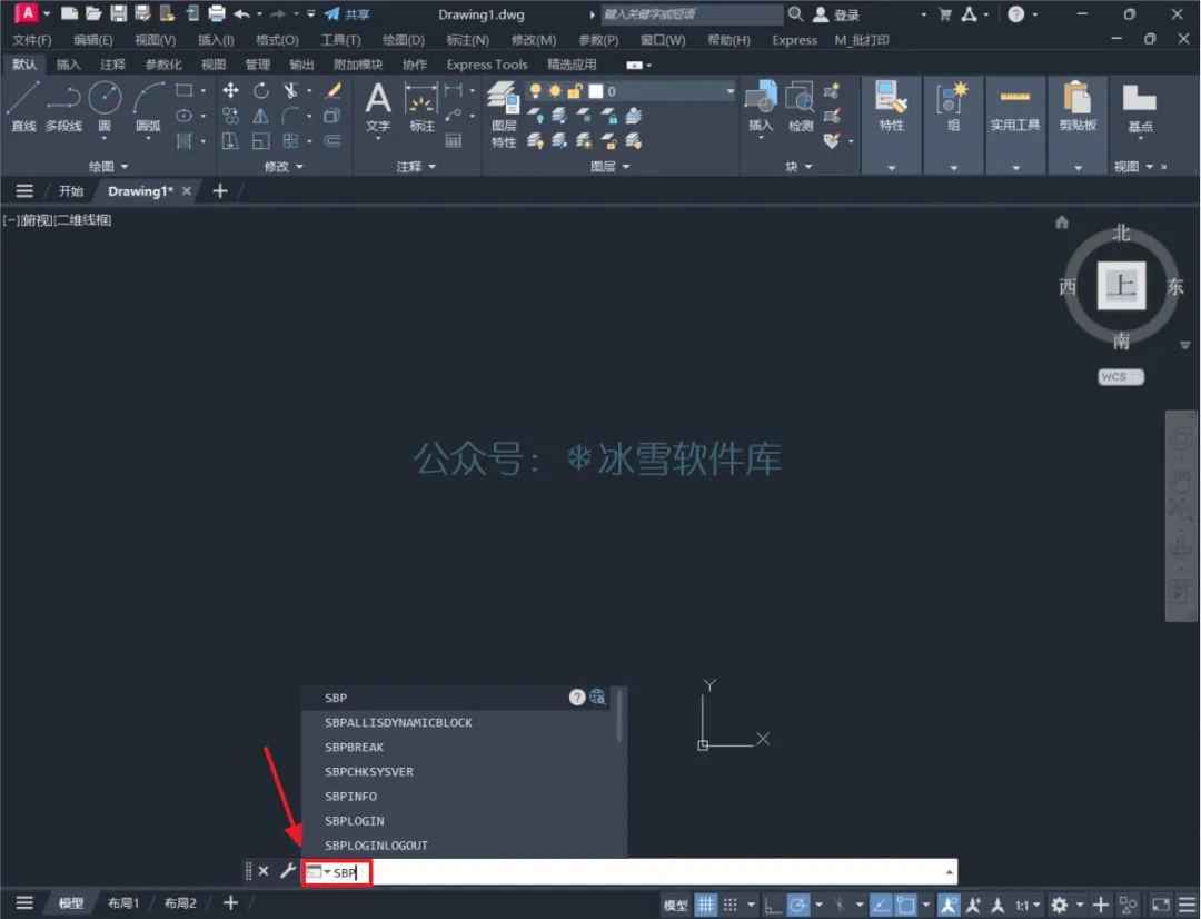 14.在打开的CAD软件界面命令栏中输入【SBP】在键盘上按【Enter】键(即回车键)。