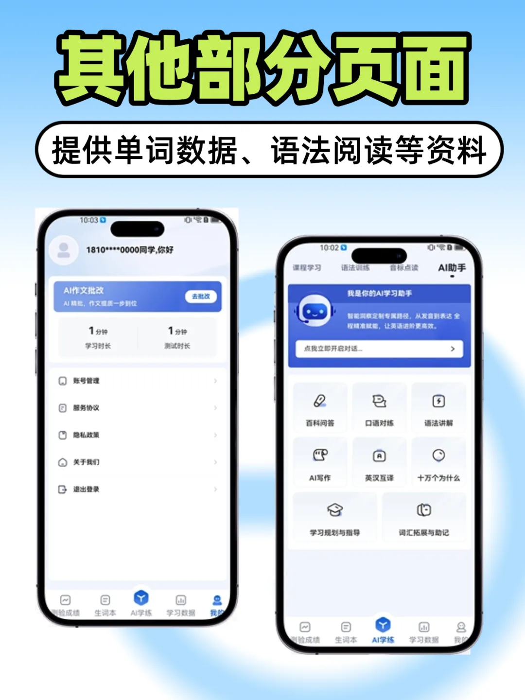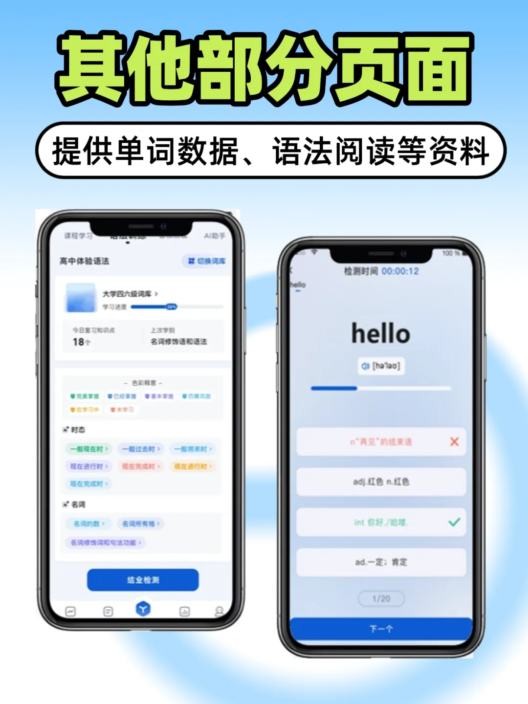覆盖语法检测、音标点读等专项模块,针对考点设计练习,学员能定向突破薄弱项,机构不用再单独开发专项练习功能。