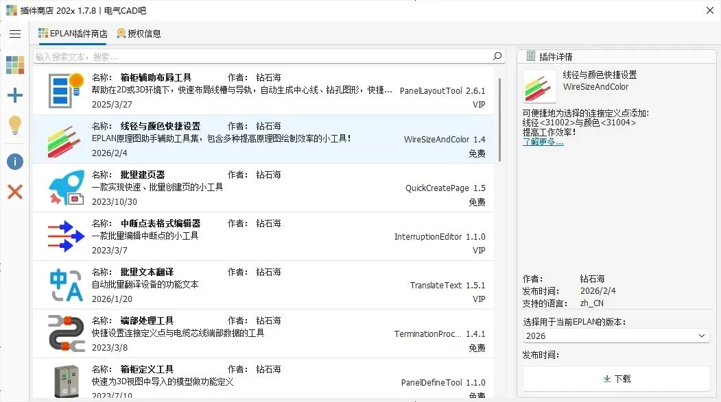 授权免费,安装好插件商店后,直接从目录中选中并加载!
