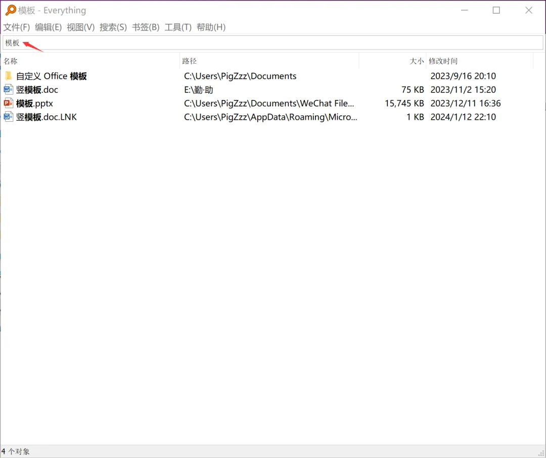 碰巧你刷到了这篇推文,于是你用 Everything 成功找到了模板文件。