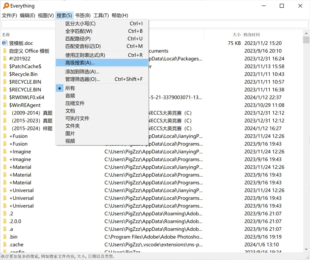 ▶ 可在菜单栏-搜索中选择文件类型。