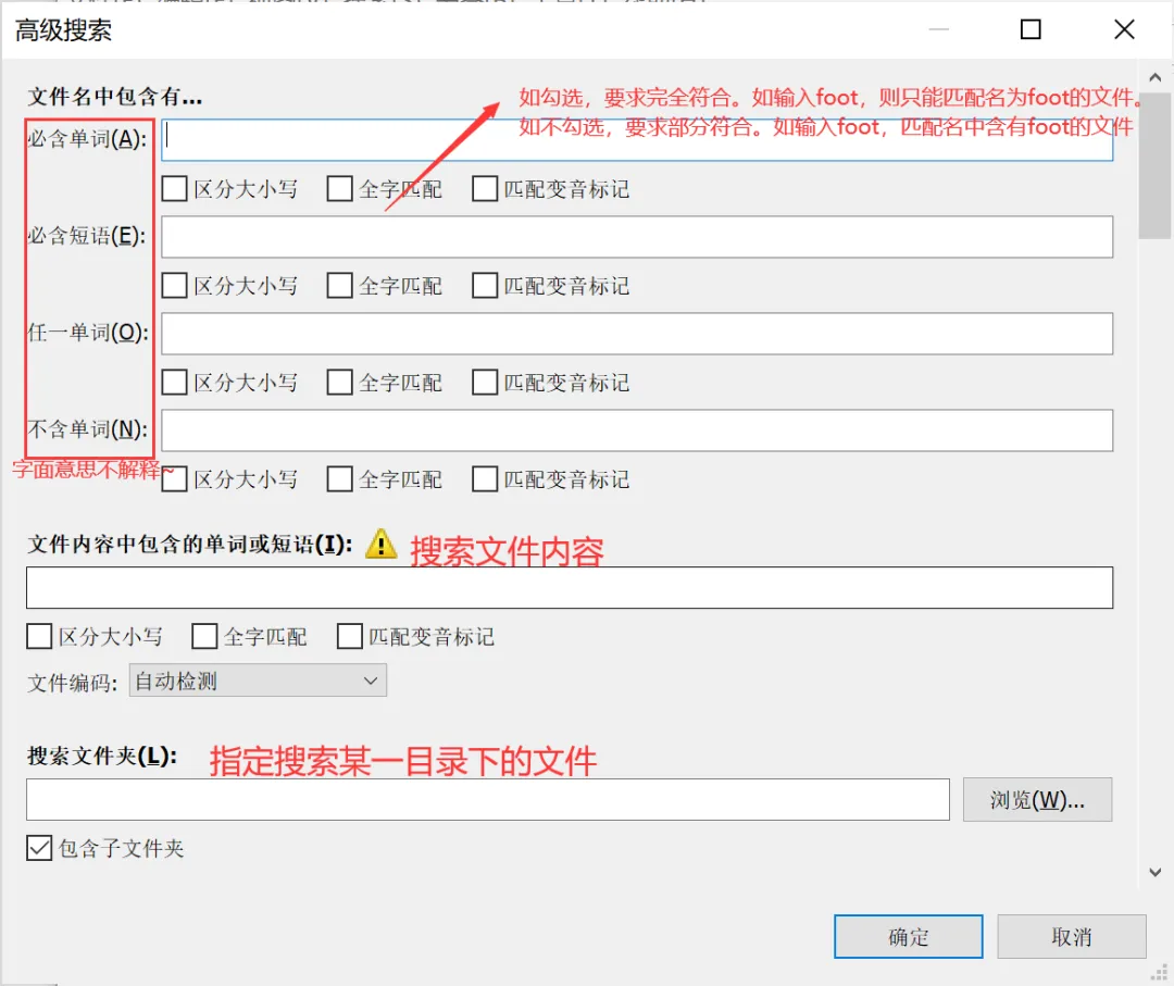 既然表达式中的空格表示“与”,那么如果要搜索的文件名包含空格怎么办?在表达式两端加英文半角引号即可。