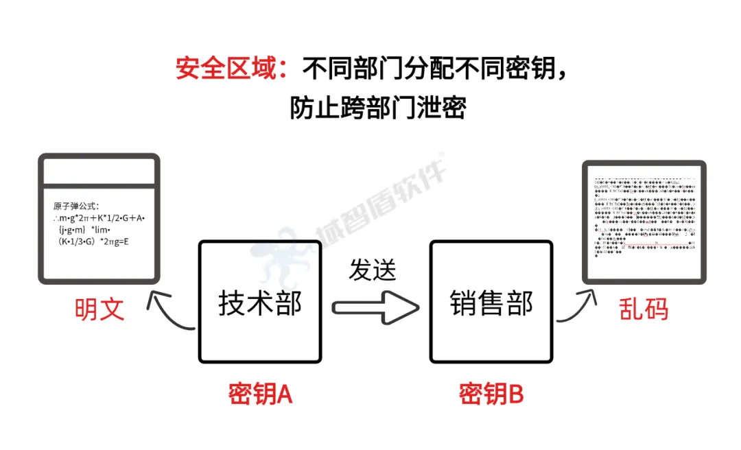 域智盾可以设置安全区域,给不同部门划分权限,比如销售部看不到研发源代码,设计部打不开财务文档,杜绝跨部门越权。而且用的是银行级加密算法,破解难度极大,外人就算拿到加密文件,也根本解不开。