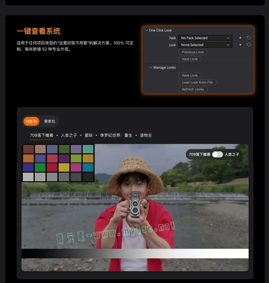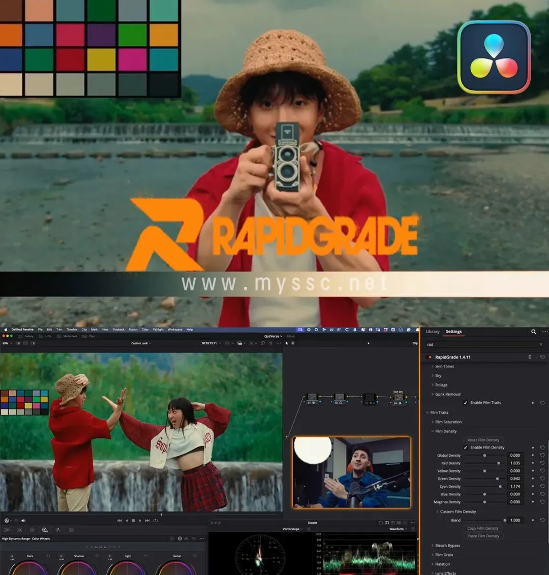 达芬奇插件:一键式AI智能好莱坞电影风格化胶片模拟调色达芬奇 Rapidgrade – Qazi Qazverse Win破解版