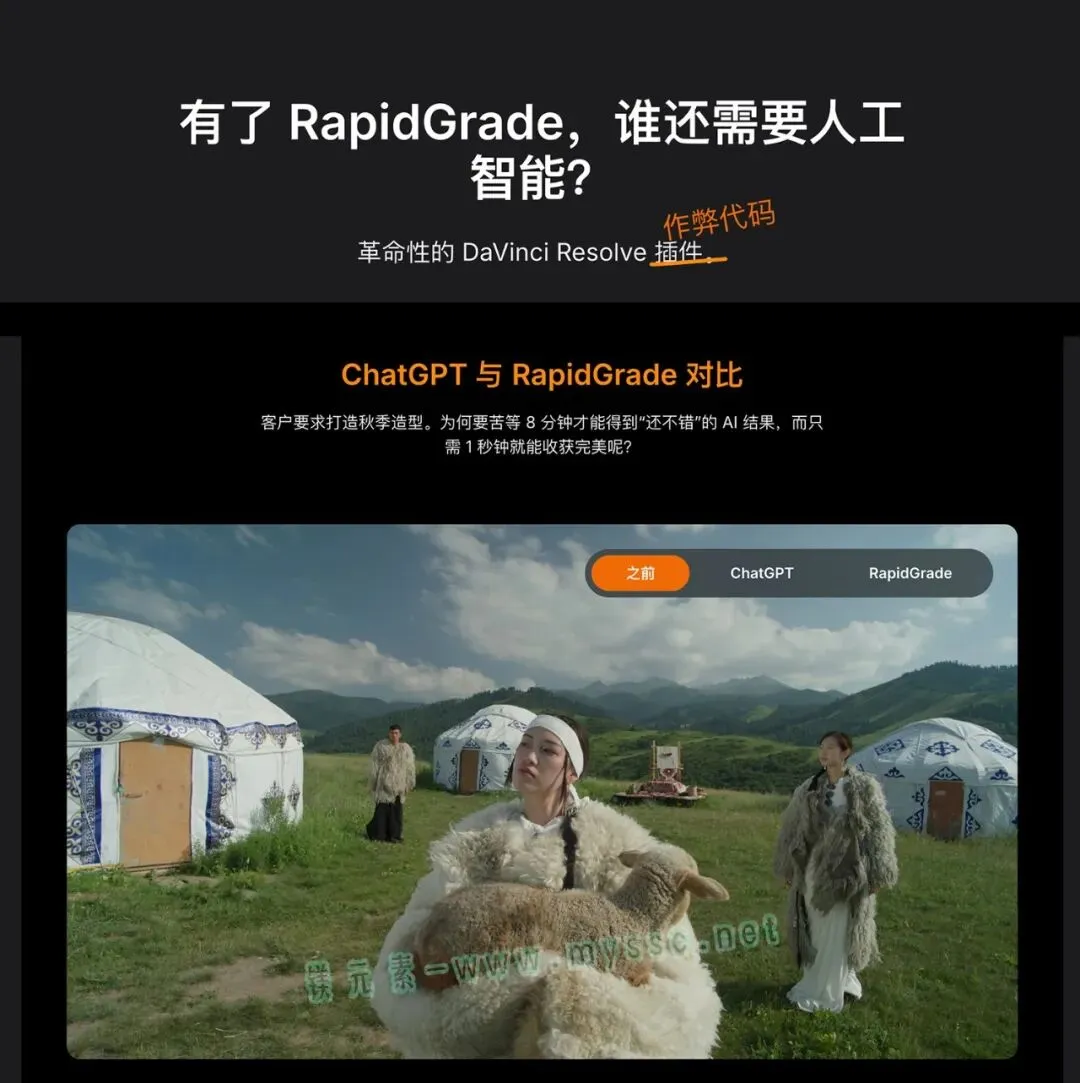 达芬奇插件:一键式AI智能好莱坞电影风格化胶片模拟调色达芬奇插件 Rapidgrade – Qazi Qazverse Win破解版