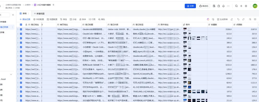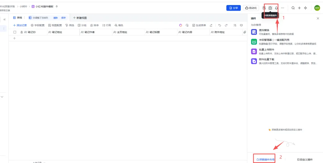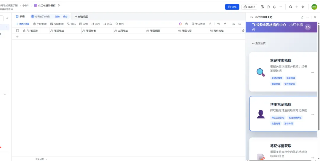 在琢磨搭建工作流的这几天,我意外的发现飞书多维表格竟然有小红书插件工坊。