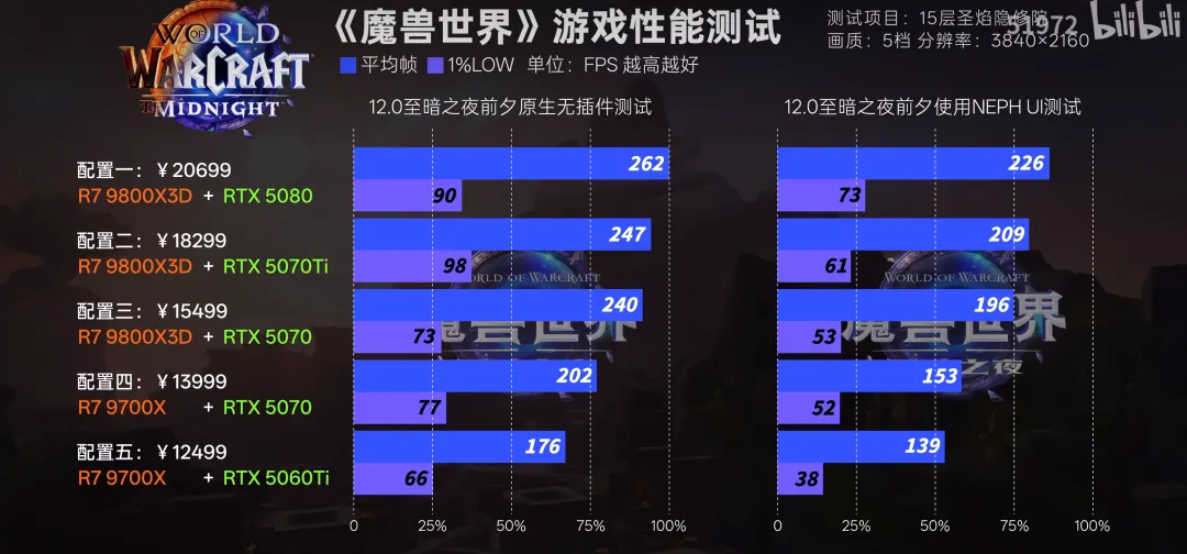 依赖插件整合包提升体验,却因家里老电脑配置不足,出现帧数暴跌、顿卡,导致倒T灭团,初期我将失败归咎于插件,后意识到核心是自身准备不足。为验证魔兽12.0至暗之夜前夕“禁用插件提升性能”的传言,我联合银河硬件工坊,用五套不同配置实测,发现同无插件状态下,11.27老版本比新版本更流畅,官方回收插件做成内置模块,不仅功能不足,还消耗算力。