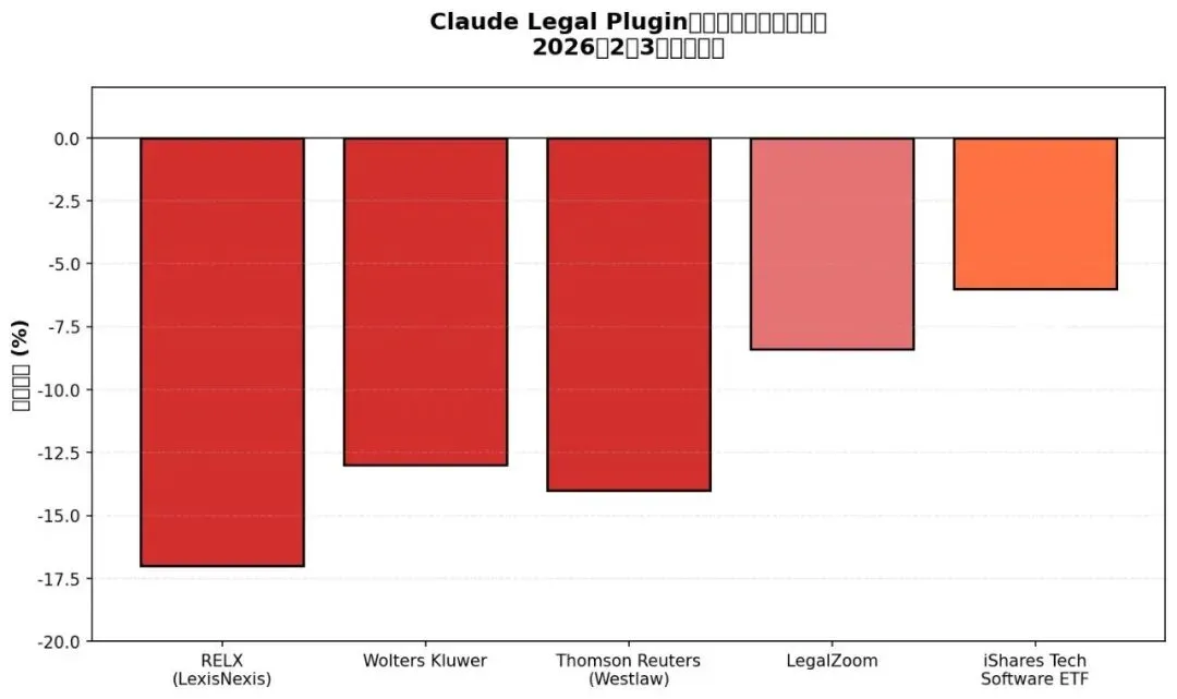 图2:Claude Legal Plugin发布后法律科技股暴跌幅度对比(2026年2月3日盘前交易)