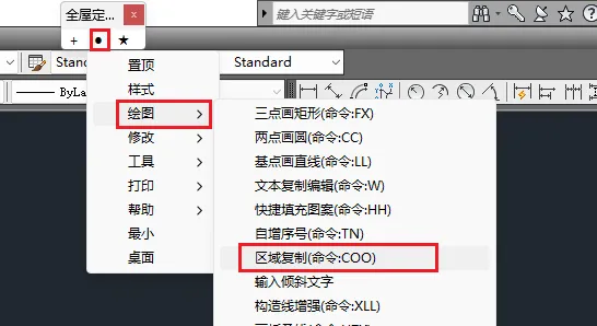 技术贴:全屋定制CAD插件COO命令详解 全屋定制CAD插件加载后,CAD里就会多出一个COO的命令,在插件 绘图 菜单里 区域复制 即是。 该命令主要用于辅助拆单,提取框选范围的图案。 输入命令:COO 选择第一角点: 选择第二角点: 点击放在这里: 刚才框选的玻璃柜门已提出放下: 玻璃柜门提取成功。
