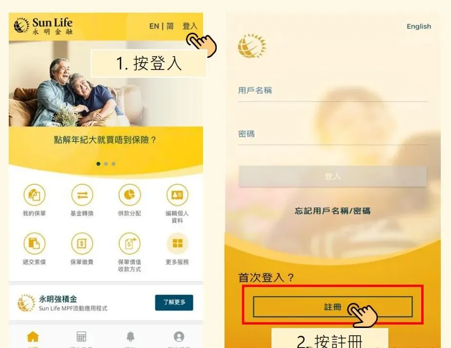 注册永明Sun Life账户(首次使用)