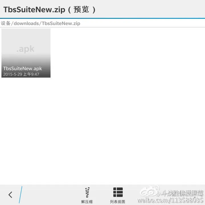 嗯是个zip文件,bb10系统支持zip压缩文件的,直接点击,打开,点击apk安装即可。