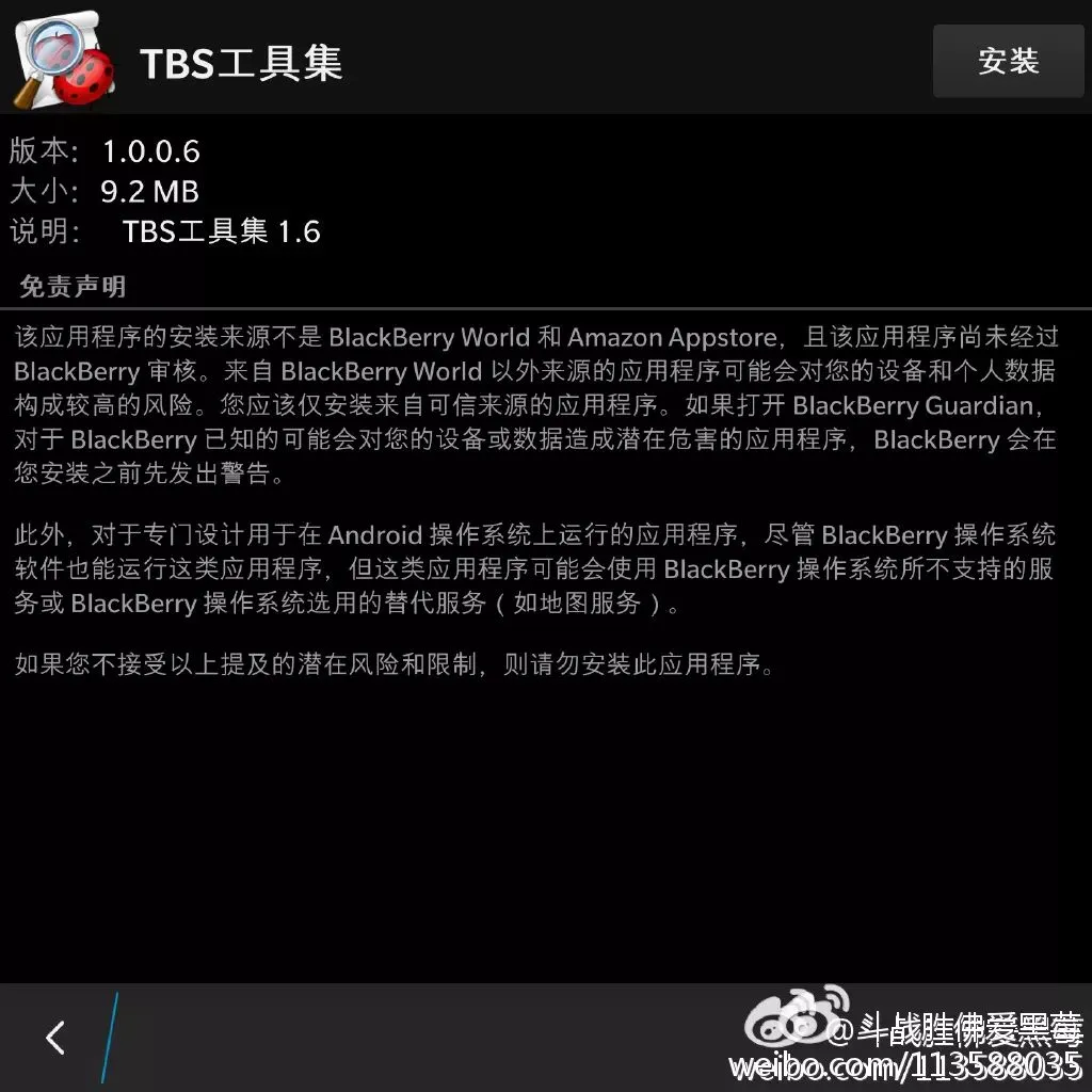 bb10系统内置了安卓4.3虚拟机(设备监控器里可以看到的),所以10.3.2开始直接支持apk安卓软件的安装。