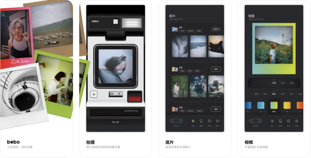 里面有10种风格滤镜,超多底片可以挑,每一个都有复古质感,相机相框自己挑,免费且还可以涂鸦,从此相机自由!
